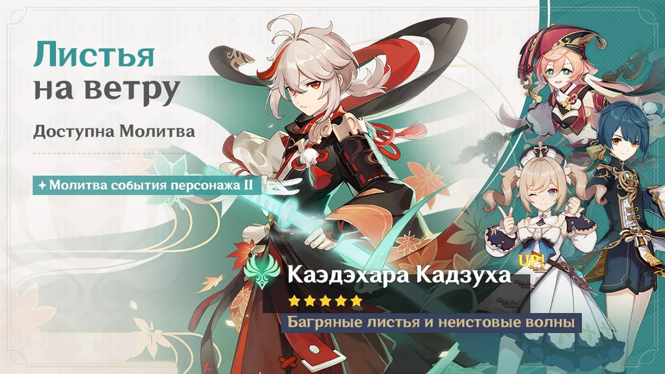 - Каэдэхара Кадзуха (5 звёзд редкости, Анемо, одноручное)