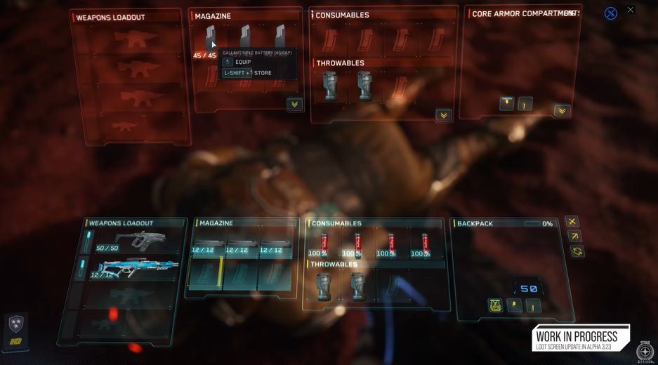 Также показали интерфейс инвентаря, дающий игрокам в Star Citizen возможность быстро подбирать лут.