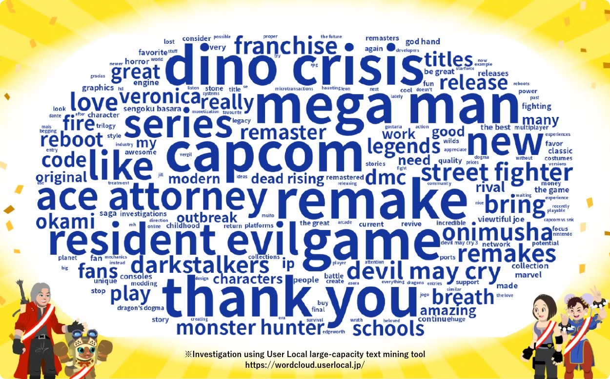 Недавно Capcom изучила более 200 тысяч анкет и подготовила инфографику со словами, которые наиболее часто упоминаются пользователями.