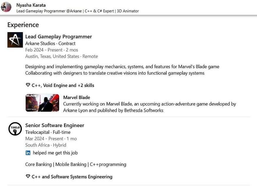 Это не подтверждение того, что Void Engine используется для разработки Marvel's Blade, а также не первое упоминание о нем в резюме разработчика, работающего над игрой в Arkane Lyon. Ранее студия работала на Void Engine над Dishonored 2 и Deathloop. Нет никаких признаков того, что команда отказалась от движка в пользу альтернативы вроде Unreal Engine 5.