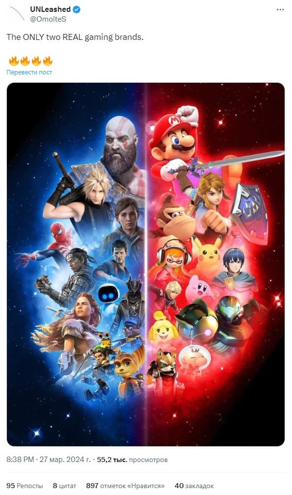 Один из пользователей Twitter поделился коллажём из двух фотографий, на которых изображены персонажи PlayStation и Nintendo. Среди них много культовых персонажей, но никого из Helldivers.