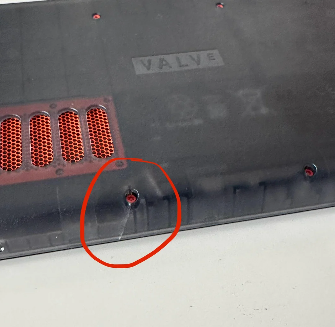 Судя по имеющейся информации, проблема у пострадавших в целом одна: трещины на Steam Deck появляются в тех местах, где находятся винты для скрепления корпуса устройства Valve. Предполагается, что проблема кроется именно в этих винтах (возможно, сильно «натянули»).