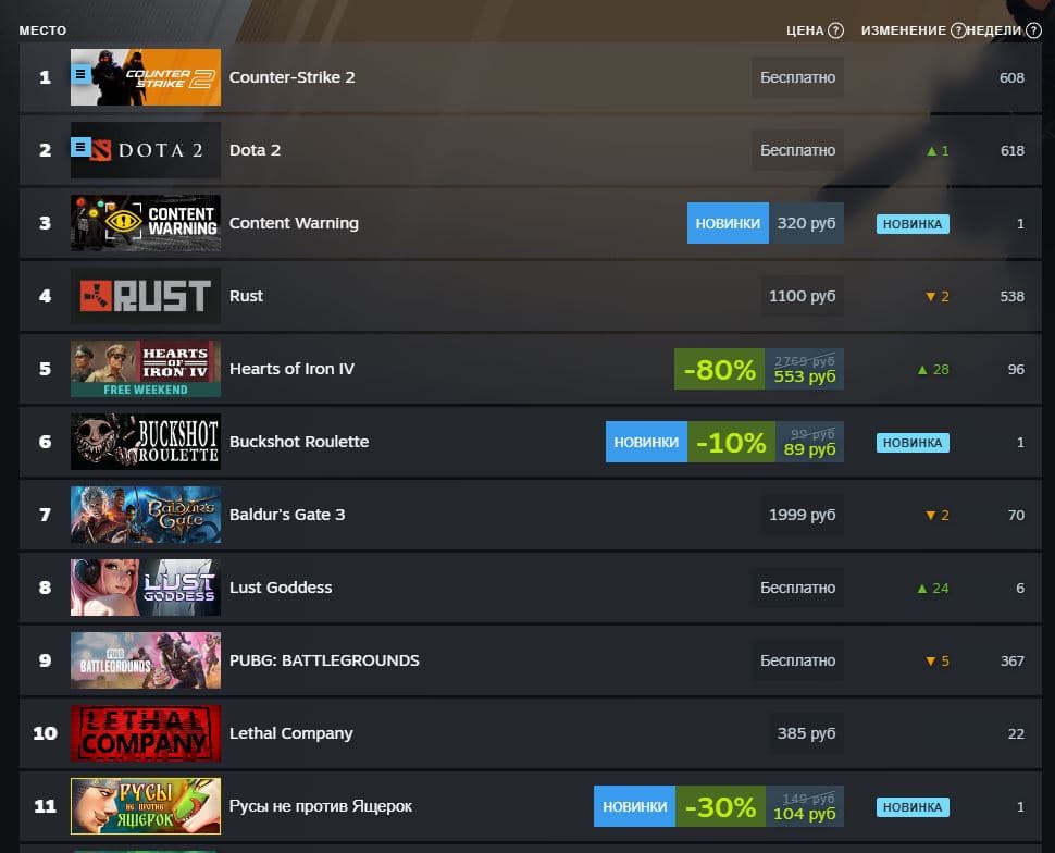 Игра обошла Elden Ring и Lost Epoch, однако уступила Conten Warning, другому хиту, стремительно набирающему популярность