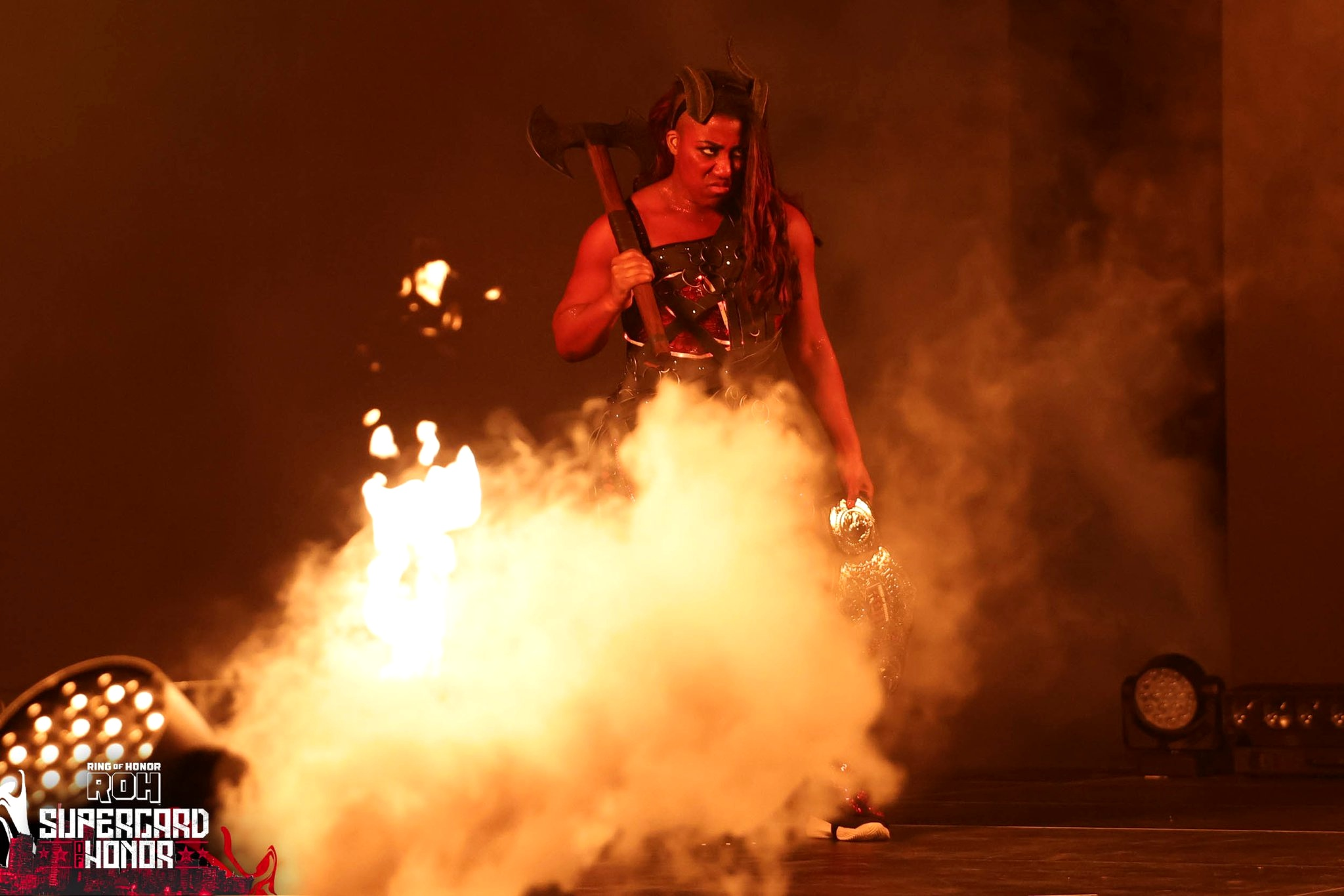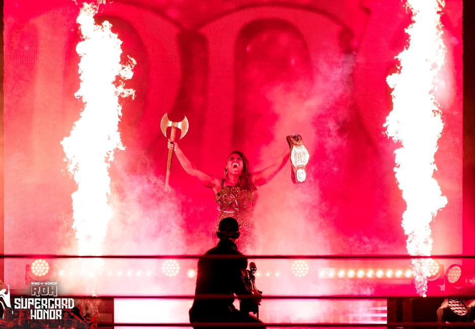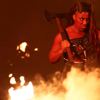 Оказалось, что рестлерша Адриенна, более известная как Афина, примерила образ огненной девушки из BG3: в бой отправилась Карлах.