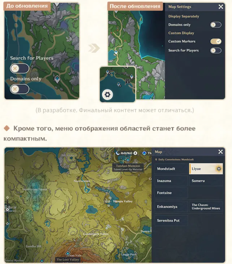 - С релизом 4.6 в карте появится новое меню Настройки, где можно настроить отображение меток. Отображение областей станет более компактным.
