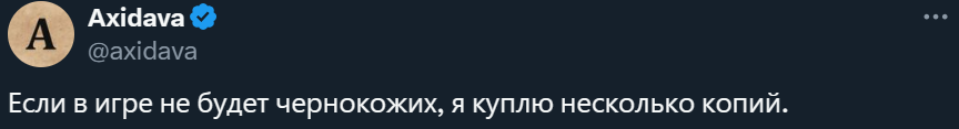 В комментариях уже начали появляться пользователи, расспрашивающие о наличии темнокожих персонажей в игре. При этом есть и сторонники прямо противоположного: призывают не добавлять модели с таким цветом кожи в игру. Кто-то спрашивает не с целью критики, а наоборот — готов взять несколько копий, если темнокожих нет в игре.