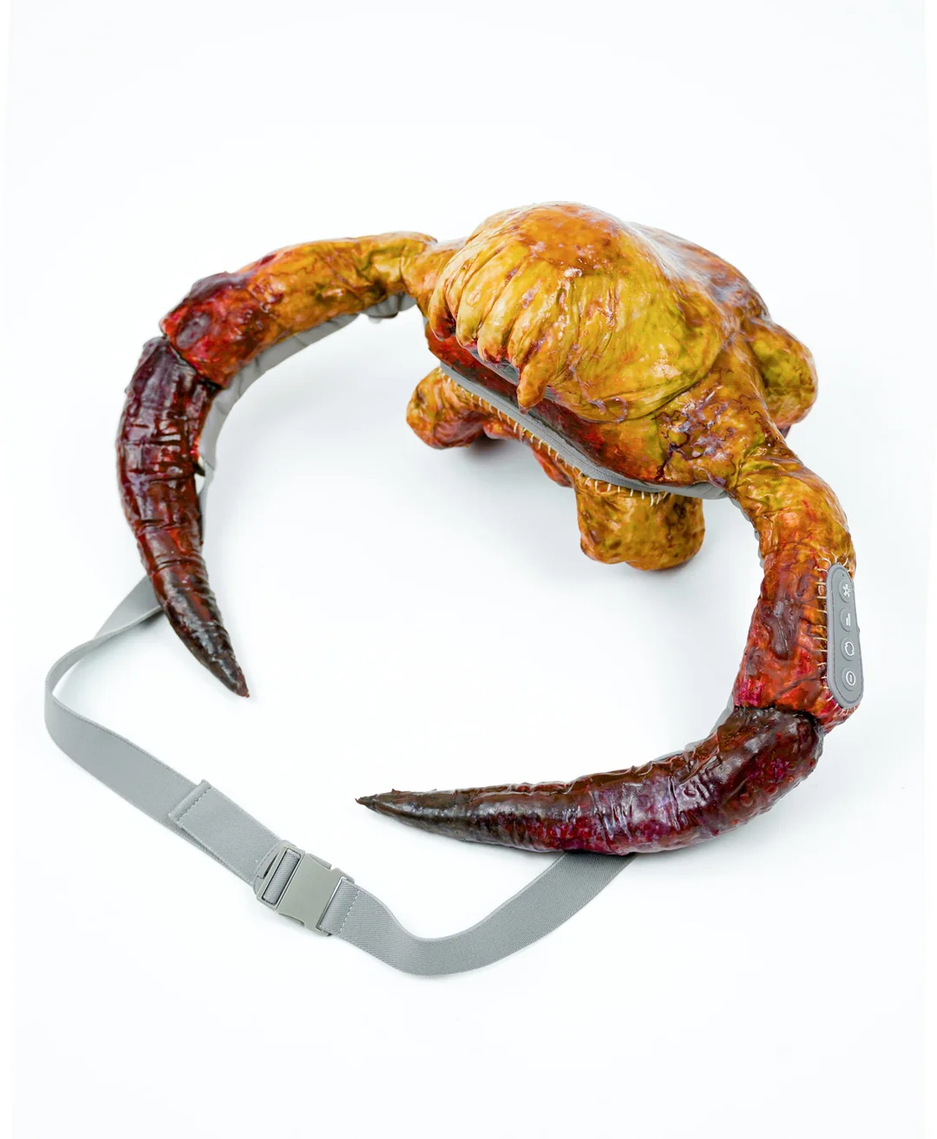 Стильный массажер крепится на шею и предлагает на выбор пять скоростей. Как заявляется в описании, для изготовления используемые материалы (латекс, резина и кожа) «уровня голливудских фильмов», т.е. хедкраб весьма качественный.