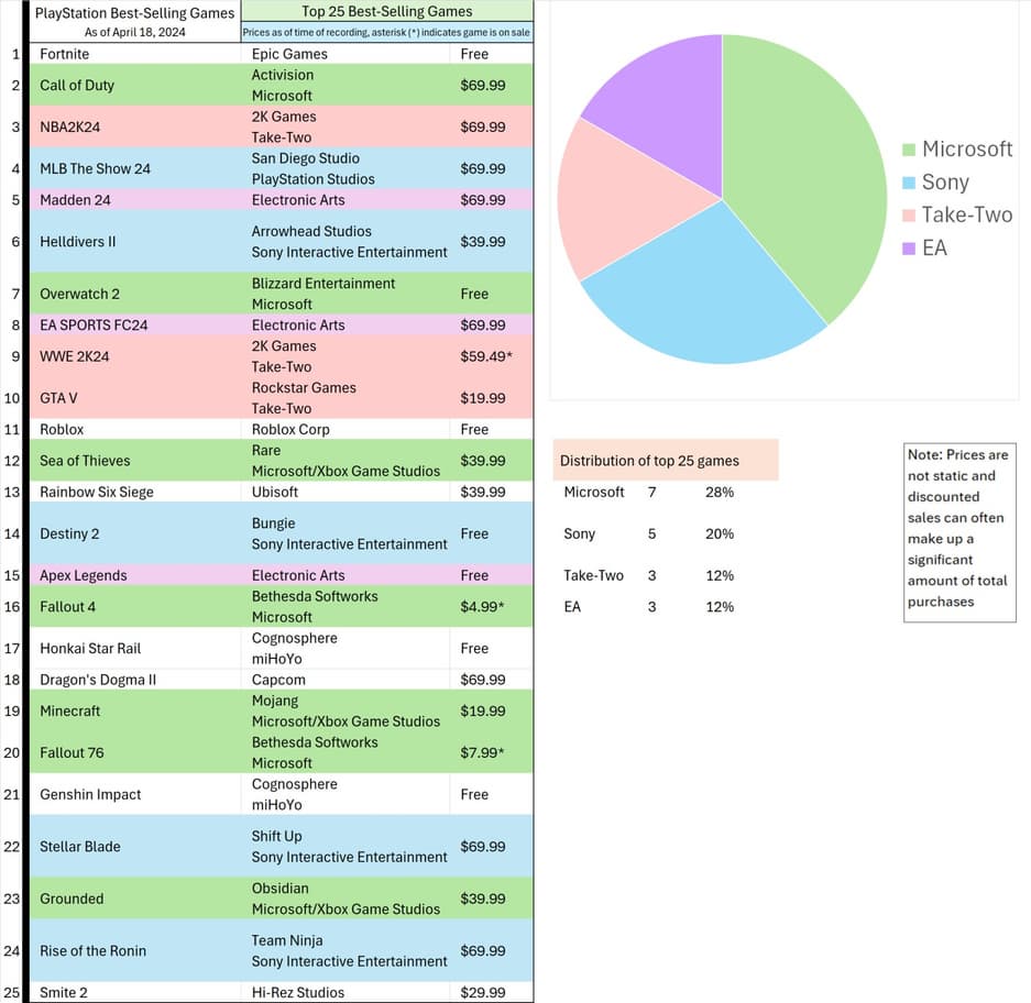 Редактор Tweaktown подметил интересную ситуацию – игры Microsoft по сути доминируют в PlayStation Store. Среди 25 самых продаваемых игр за последние несколько дней семь продуктов принадлежат Microsoft, и только пять – Sony.