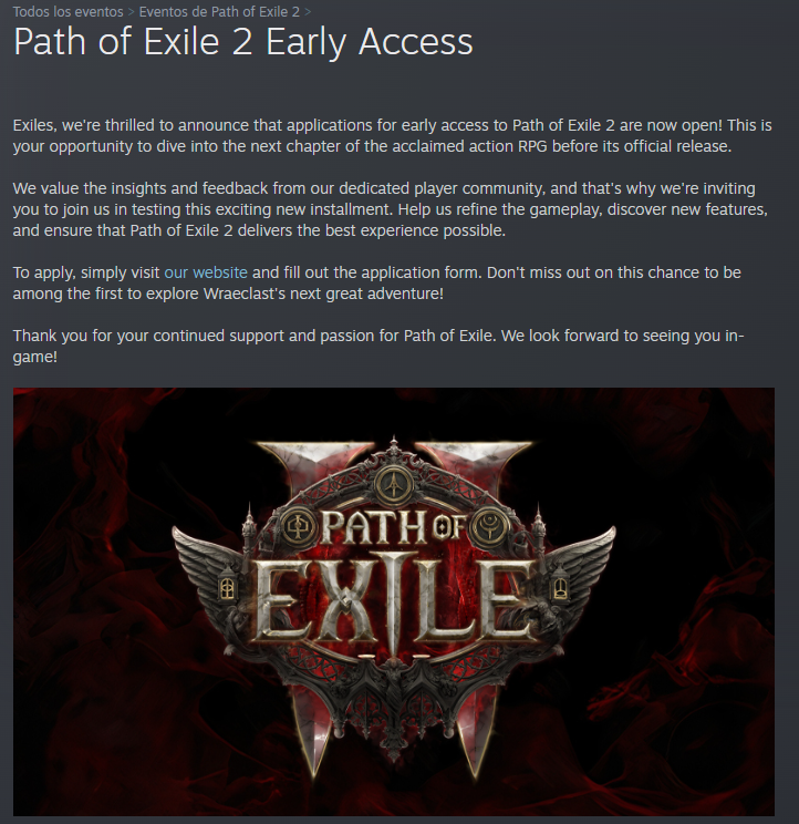 Недавно на странице Path of Exile 2 в Steam опубликовали новость. Якобы Grinding Gear Games приглашает записаться на «ранний доступ» к ожидаемой многими PoE 2.