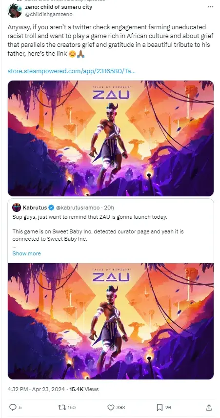 Продемонстрировать недостойное для взрослого человека поведение Робинсона заставила публикация KabrutusRambo в социальной сети X (когда-то Twitter), где тот напомнил об участии конторы Sweet Baby Inc в разработке вышедшей 23 апреля метроидвании Tales of Kenzera: ZAU.