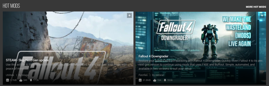 Сложилась ситуация, когда в топе по популярности на Nexus Mods среди «горячих модификаций» расположились моды, посвящённые «откату патча».