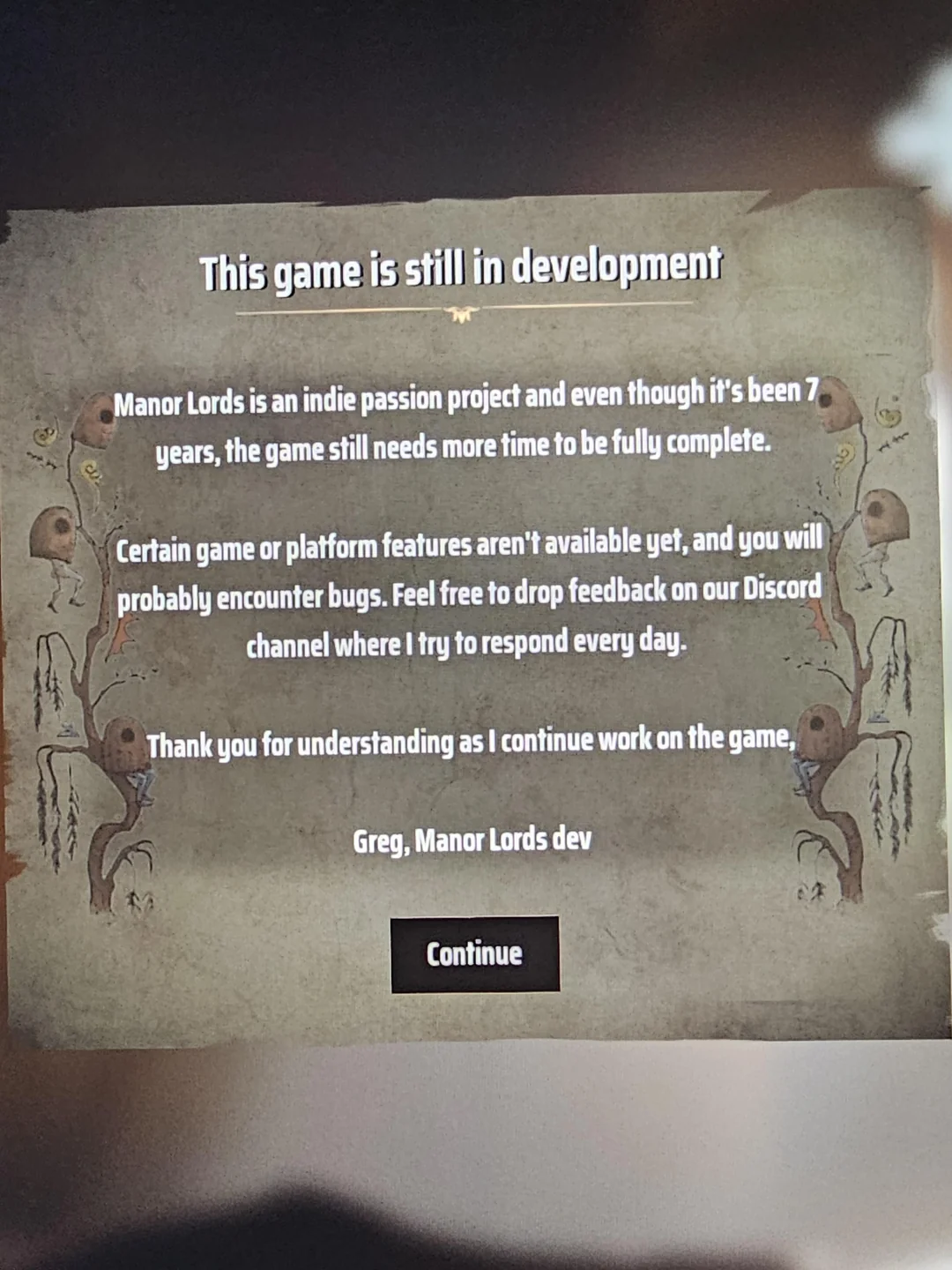Manor Lords привлекла сообщество Cities Skylines 2 подходом к запуску: игрокам в раннем доступе предлагают работающий проект, при этом разработчик ещё и предусмотрел табличку-оповещение о том, что «игра всё ещё в разработке» и поэтому некоторые функции не представлены и могут встречаться какие-нибудь баги.
