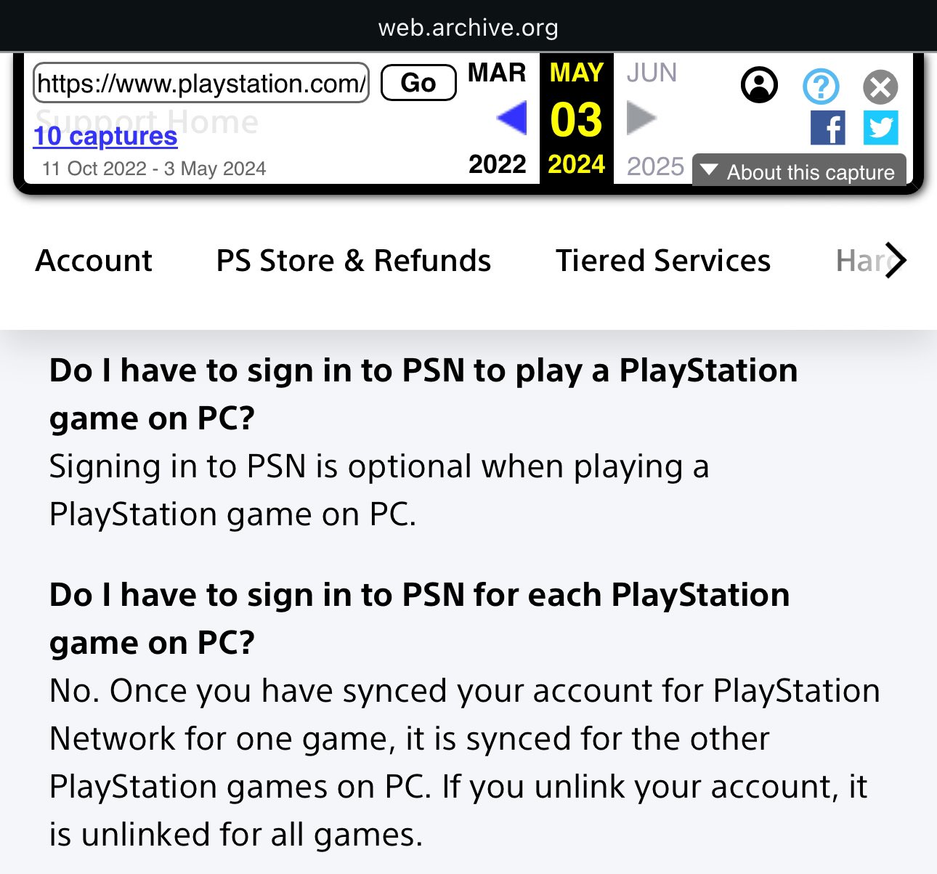 Если раньше было «Вход в PSN не является обязательным при игре в проект [издаваемый Sony] PlayStation на ПК», то теперь используется формулировка «Некоторые игры PlayStation могут потребовать от вас входа в систему и привязки к учётной записи PSN».
