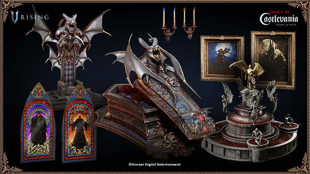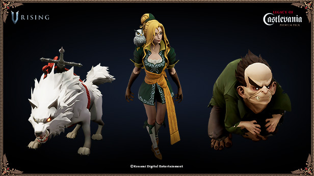Одновременно с запуском полной версии V Rising разработчики выпустили DLC-коллаб с Konami Digital Entertainment: вышло дополнение «набор Legacy of Castlevania Premium», в состав которого входят новые косметические предметы, которые позволят примерить легендарные прически, одежду и формы из классической серии игр о вампирах Castlevania.