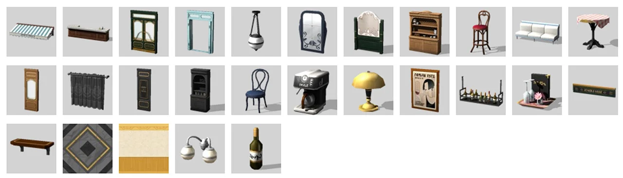 Первый DLC-комплект для The Sims 4 с уличной мебелью (насчитывает 26 предметов): в наличии шезлонги, кресло, зонтик, лестница для бассейна, разноцветные камни, некое растение и подобие беседки.