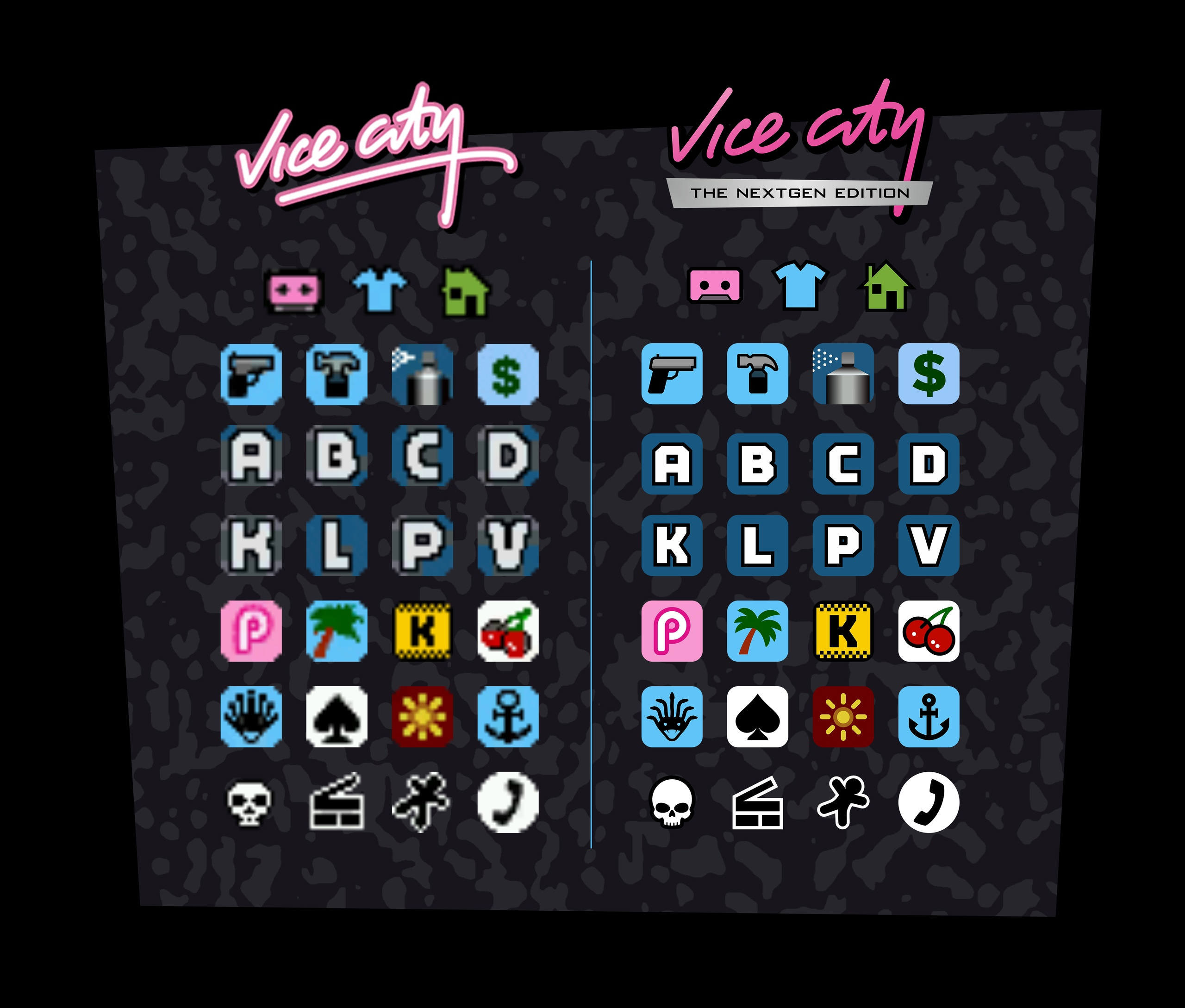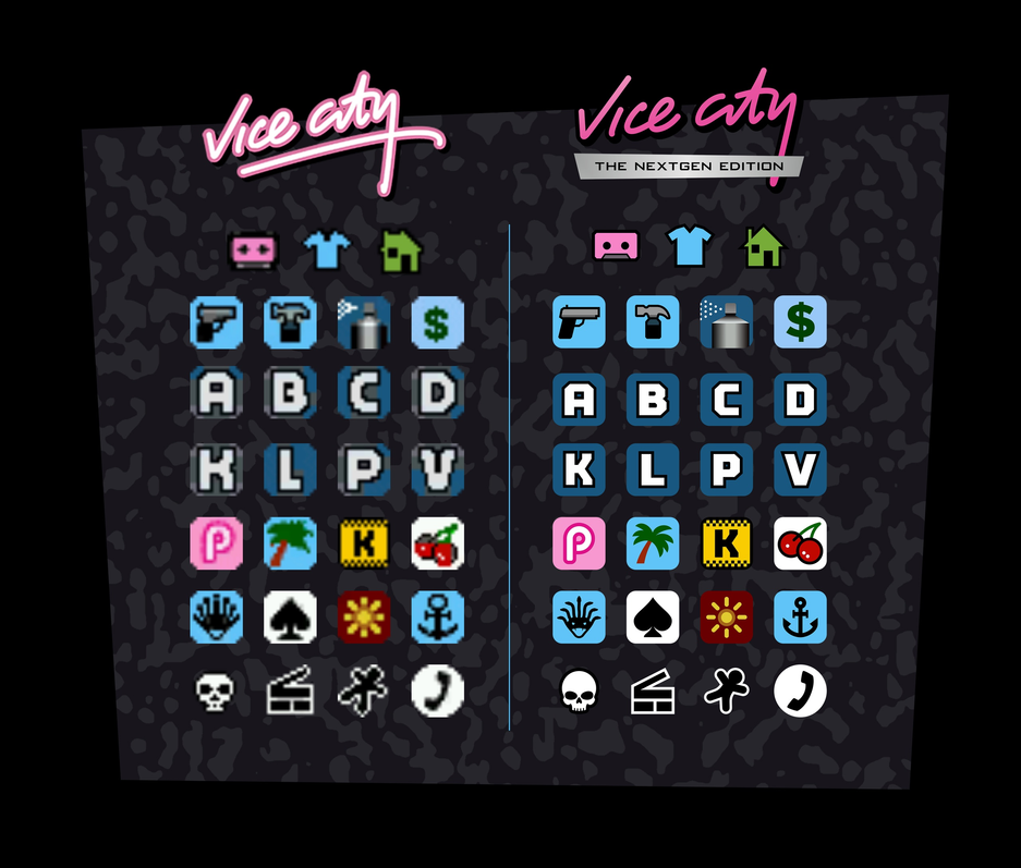 Создатели GTA Vice City Nextgen Edition на движке RAGE из GTA 4 вновь решили поделиться информацией о работе. В этот раз предлагают оценить иконки, которые будут использоваться в их проекте.