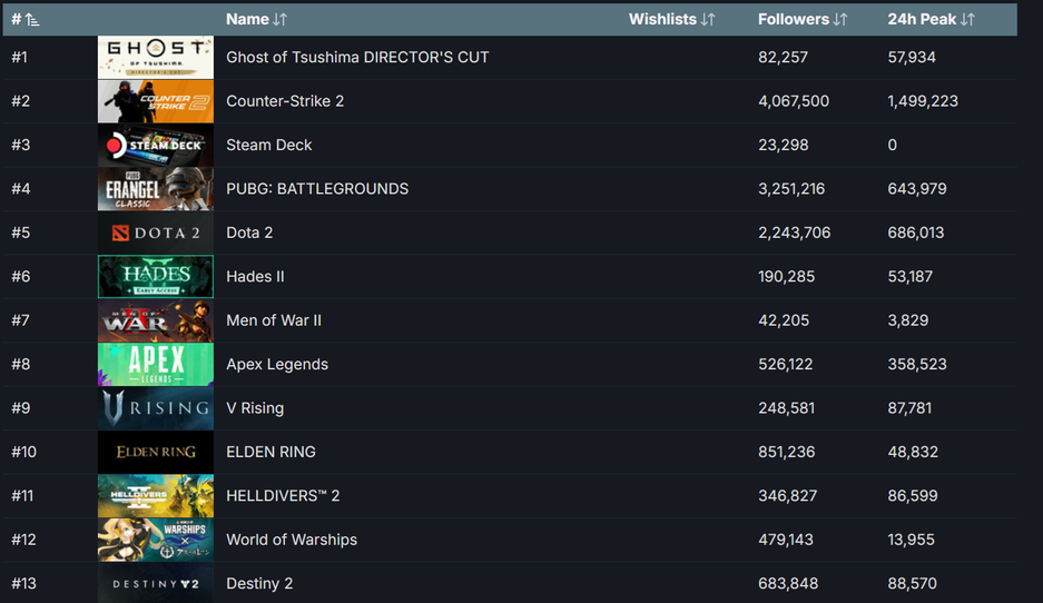 Автор скриншотов: steamDB. Источник изображений: steamdb.info