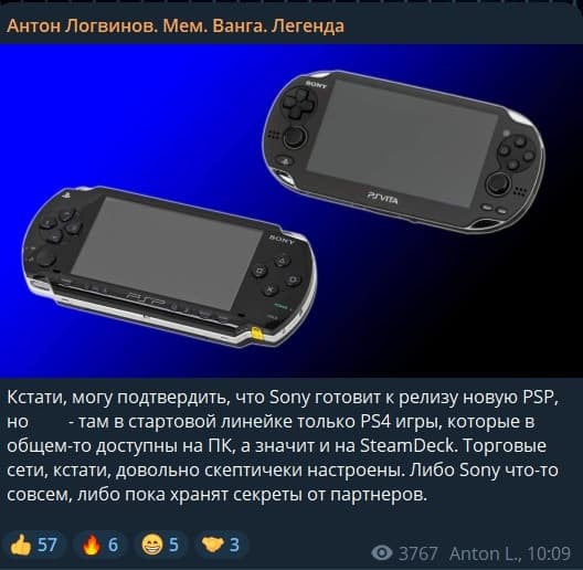 Известный блогер, который первым сообщил, что эксклюзивы PlayStation начнут выходить на ПК задолго до официального подтверждения, написал в Telegram о том, что японская компания трудится над новой PSP.