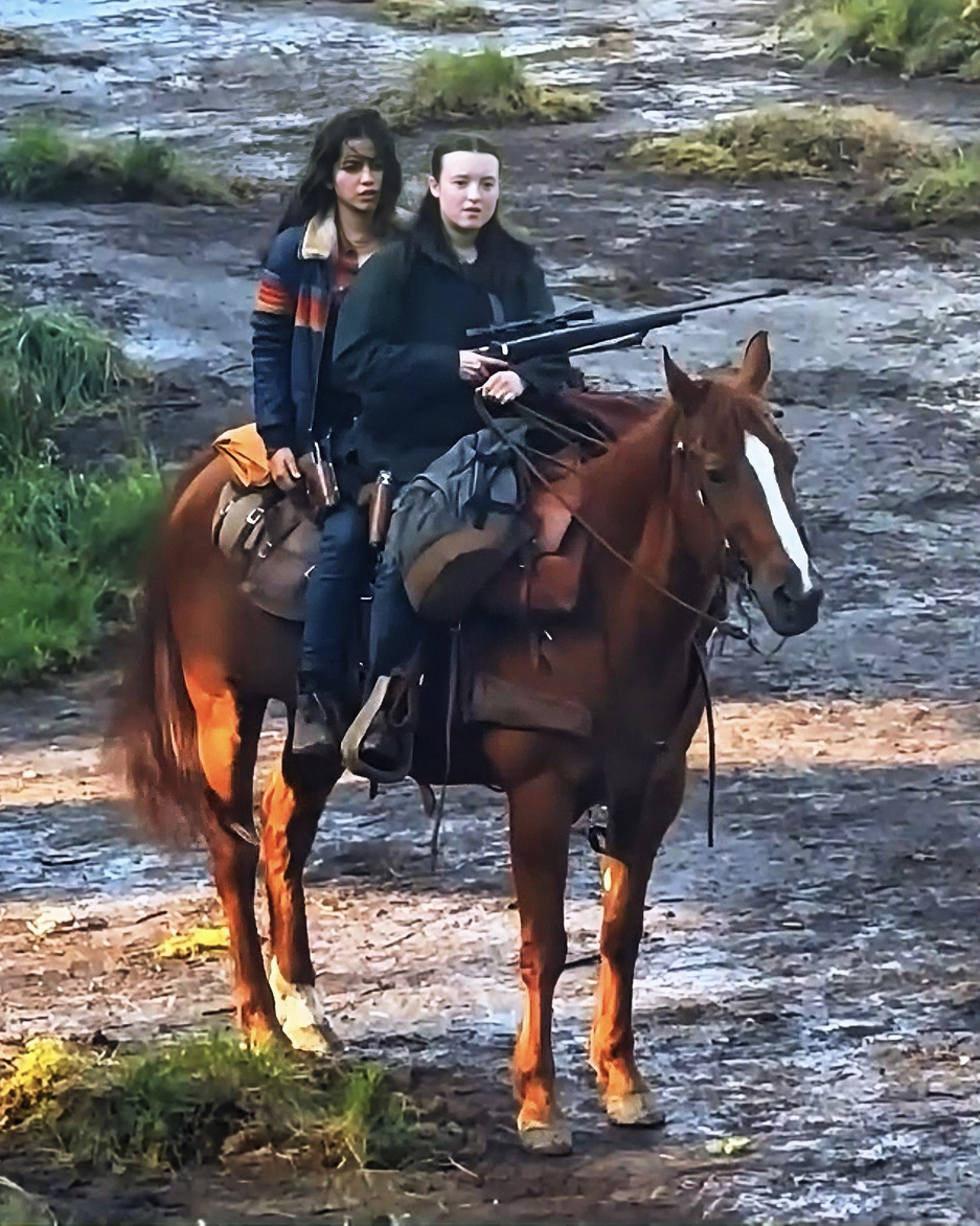 В кадр попала Элли в исполнении Беллы Рамзи (Bella Ramsey), а также Дина, роль которой играет Изабела Мерсед (Isabela Merced) — героини ездят верхом на лошади и с оружием в руках.