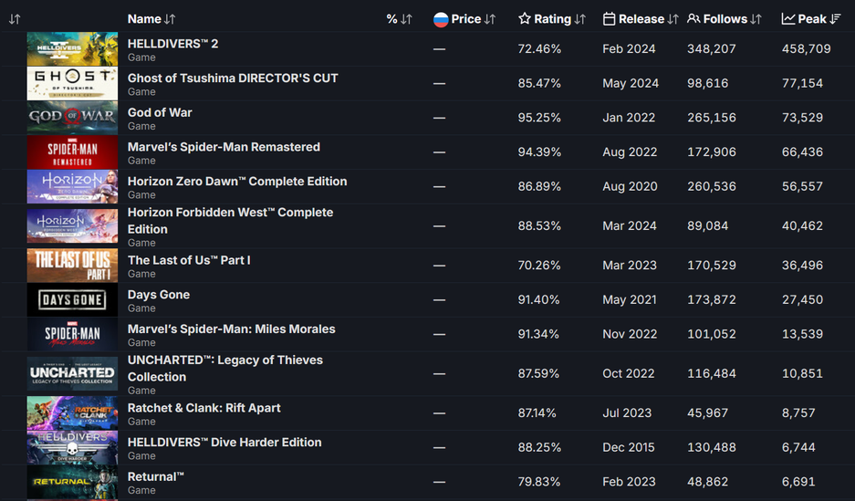 Получается, что Ghost of Tsushima Director's Cut это крупнейший запуск Sony PlayStation на ПК в Steam, если не считать Helldivers 2, у которой онлайн превысил 450 тысяч.