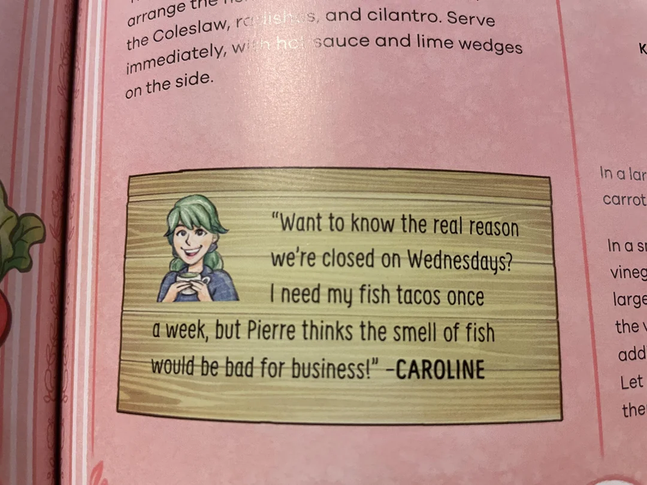 В кулинарной книге Stardew Valley можно встретить следующий фрагмент с комментарием героини: