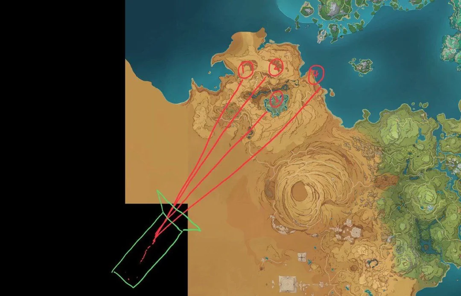 Просчитанную точку он обозначил на карте — похоже, что Натлан будет располагаться недалеко от Сумеру.