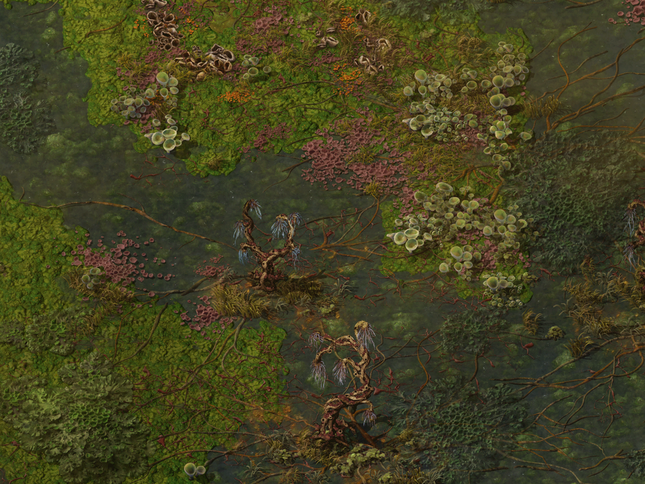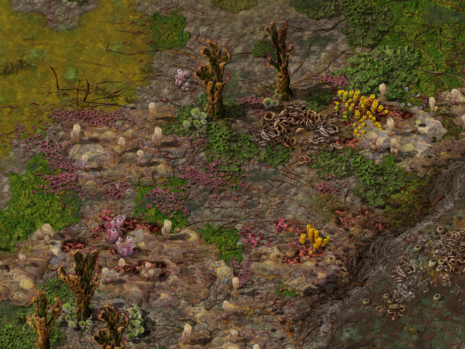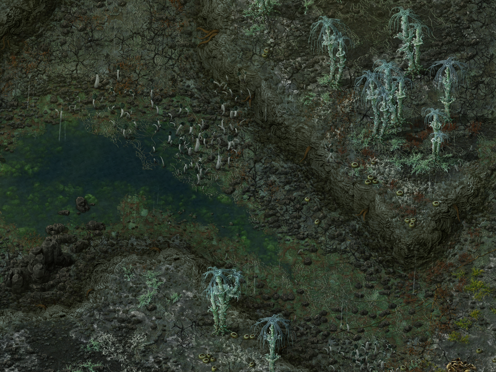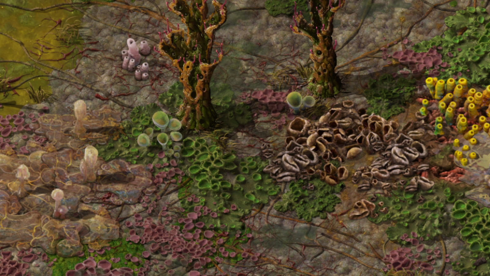 У команды было понимание, что нужно нечто «более инопланетное». В итоге у разработчиков получился мир, вдохновлённый «микрокосмом подводного мира лишайников, грибов и водорослей».
