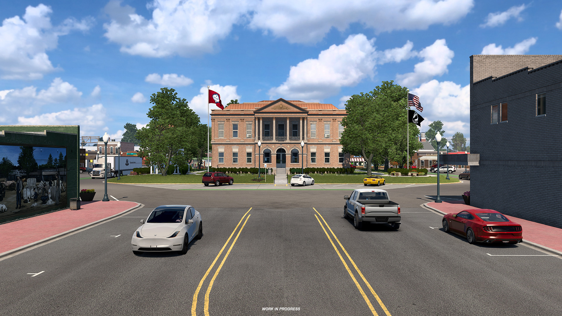 Но Арканзас будет радовать поклонников American Truck Simulator не только природным разнообразием, также в штате есть различные населённые пункты, куда (или откуда) предстоит доставлять грузы. Например, в городе Магнолия водителей ожидает интересная круговая развязка.