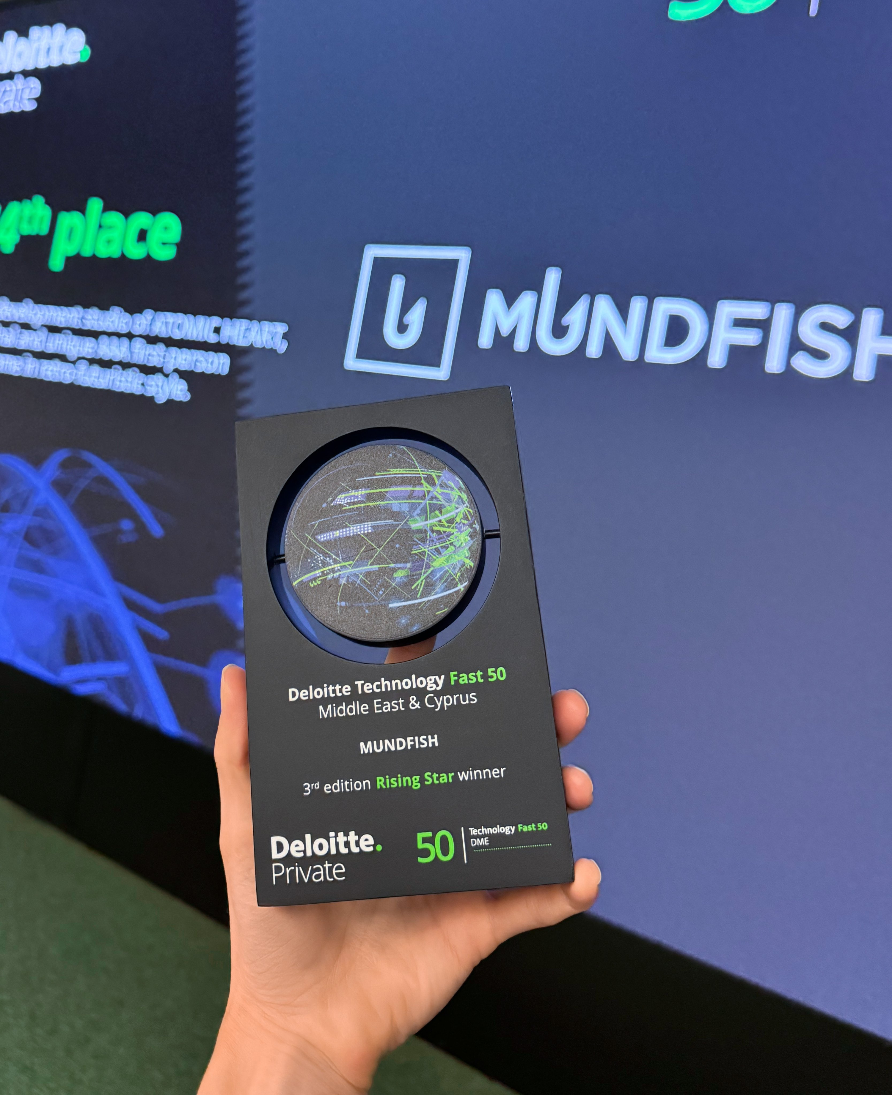 Теперь разработчики показали, что это не «просто слова» — в социальной сети опубликовали фото. Вручение происходит в рамках программы Technology Fast 50 на Ближнем Востоке и на Кипре (Mundfish относится к данному региону).