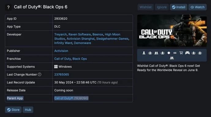 Информация поступила от пользователя Reddit, который нашел соответствующую запись в базе данных SteamDB. Black Ops 6 будет загружаться как «DLC» для приложения Call of Duty HQ, подобно тому, как это произошло с Modern Warfare III.