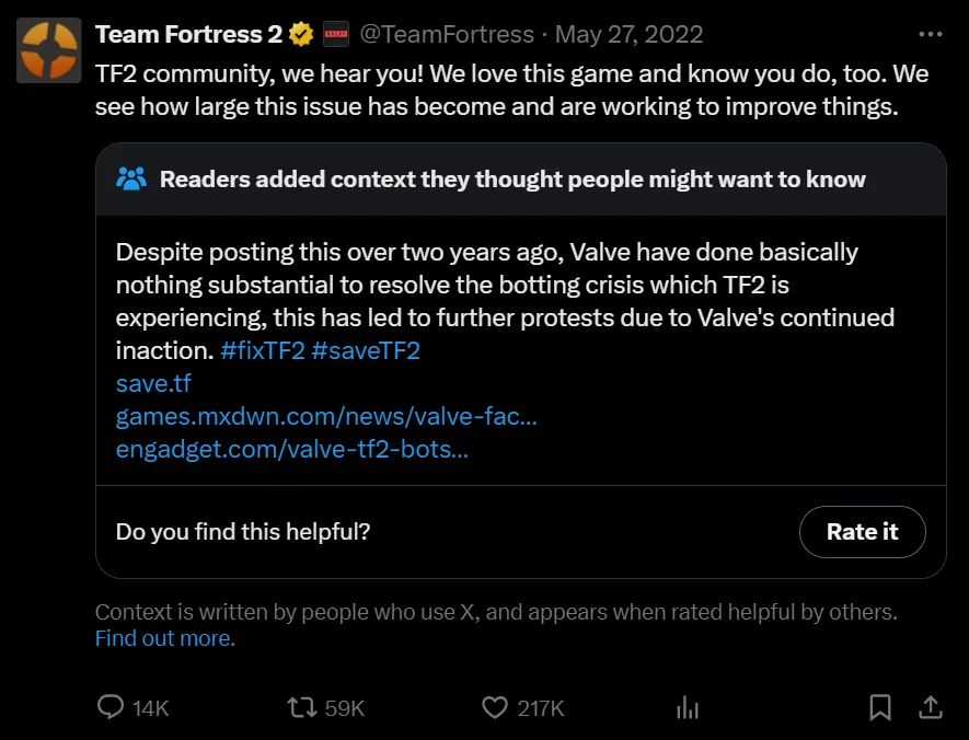 Боты в Team Fortress 2 продолжают доставлять проблемы. Игроки пытаются изменить текущее положение дел