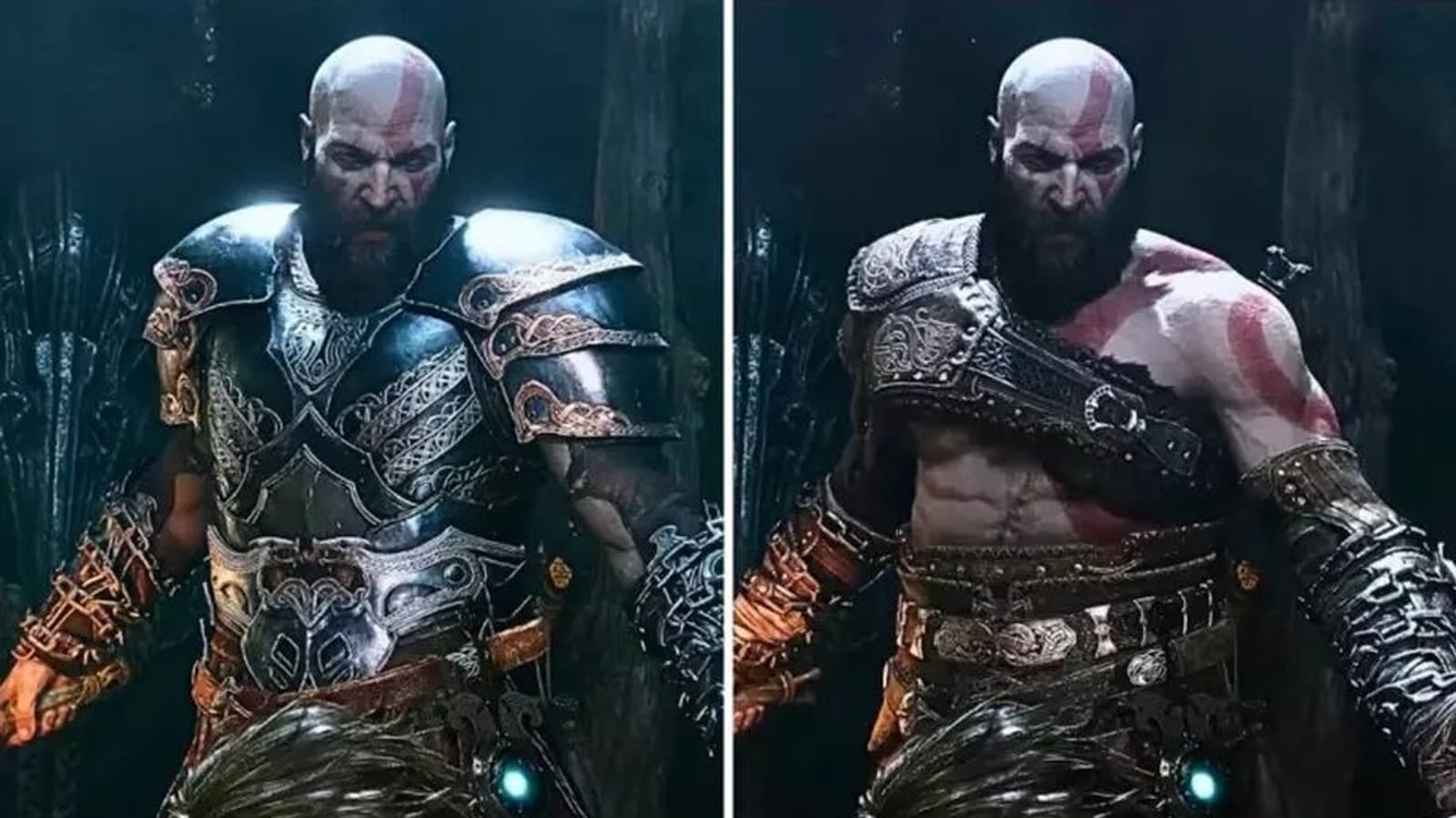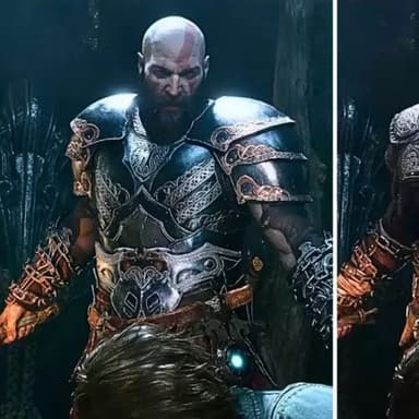 На представленных кадрах видны различия в оттенках и детализации. Тщательное обновление визуала можно увидеть в сцене, где Кратос сидит с Тором за столом – стоит обратить внимание на задний план. Но данное сравнение предварительное с ограниченным анализом и более подробные кадры появятся после релиза игры на ПК.