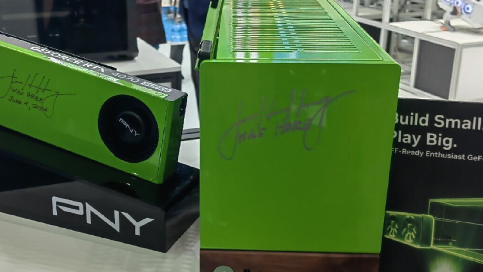 Босс NVIDIA изучал выставку и кое-что заметил. Дженсен Хуанг решил оставить отметку на память