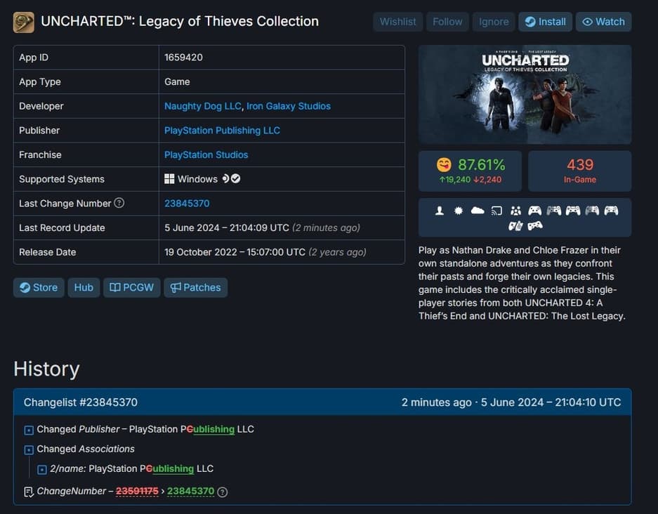 Отныне все игры PlayStation Studios в Steam публикуются под именем PlayStation Publishing LLC. На первый взгляд изменение может показаться незначительным, но у некоторых игроков есть своя теория. Недавно в сети появилась информация, согласно которой Sony якобы работает над созданием собственного лаунчера. Геймеры утверждают, что смена названия — это изменение, которое стало одним из элементов подготовки.