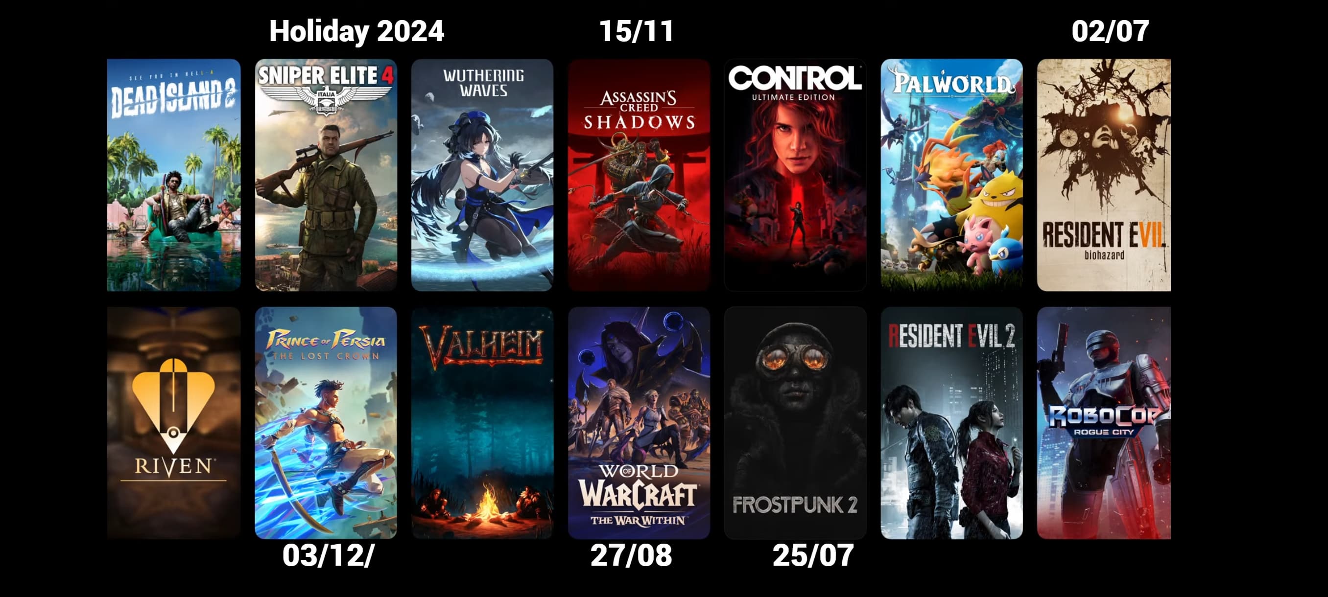 Среди новинок стоит ждать Assassin's Creed Shadows, Riven, Frostpunk 2 и дополнение World of Warcraft: War Within. Наряду с новинками ожидаются и портированные версии крупных релизов с других платформ. С полным списком проектов можно ознакомиться на скриншоте ниже.