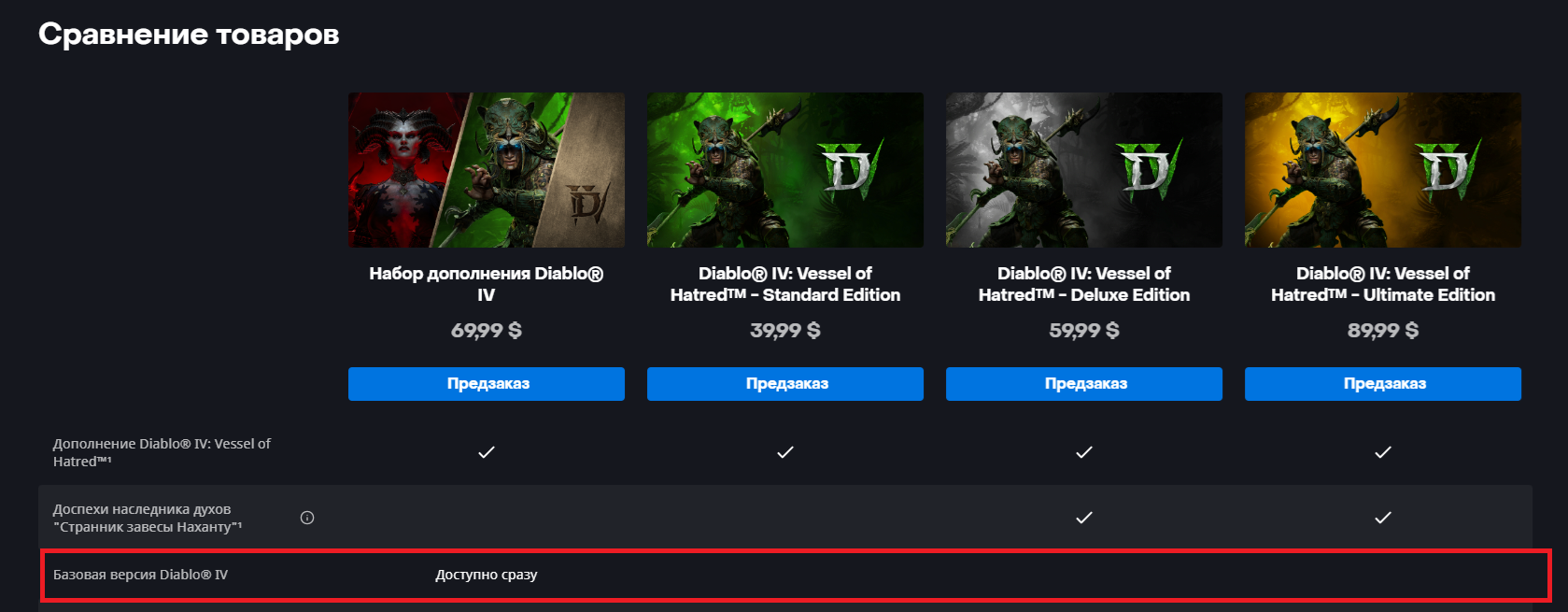Речь идёт именно о покупке изданий DLC — можно заметить в таблице с изданиями, что сама игра в сделку не входит, если не брать «бюджетный» вариант за 70 долларов «Набор дополнения Diablo IV».