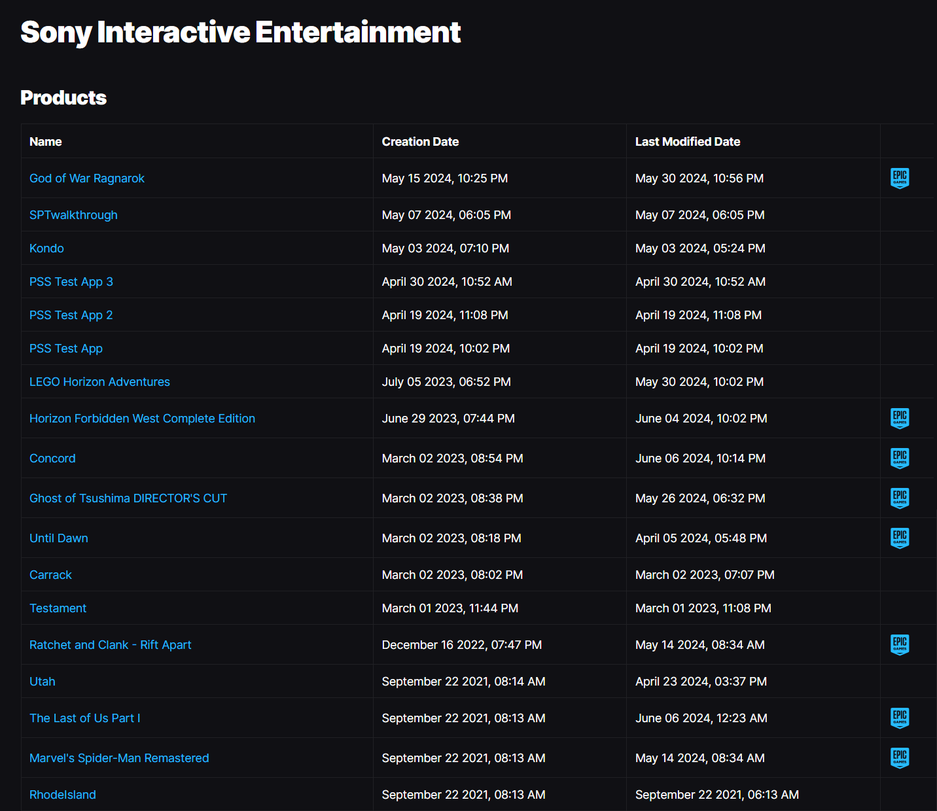 У Sony Interactive Entertainment на аккаунте обнаружены God of War Ragnarok, Concord, Until Dawn и несколько таинственных проектов. Kondo, Carrack, Testament, RhodeIsland трудно расшифровать, но, похоже, «Uhah» - это The Last of Us: Part II.
