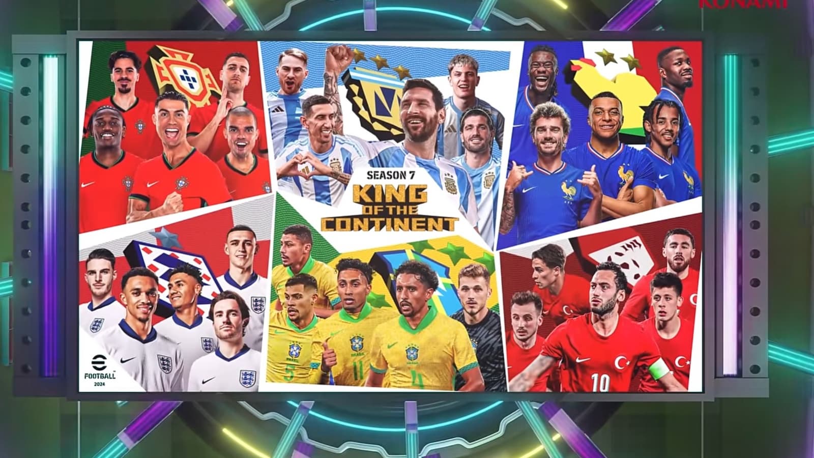 И это не может не отразиться на мире видеоигр. Недавно EA Sports FC 24 объявляла о специальных мероприятиях, приуроченных к событию, а теперь это можно отнести и к игре Konami. eFootball 2024 вступает в седьмой сезон с тематикой европейского и американского кубков.