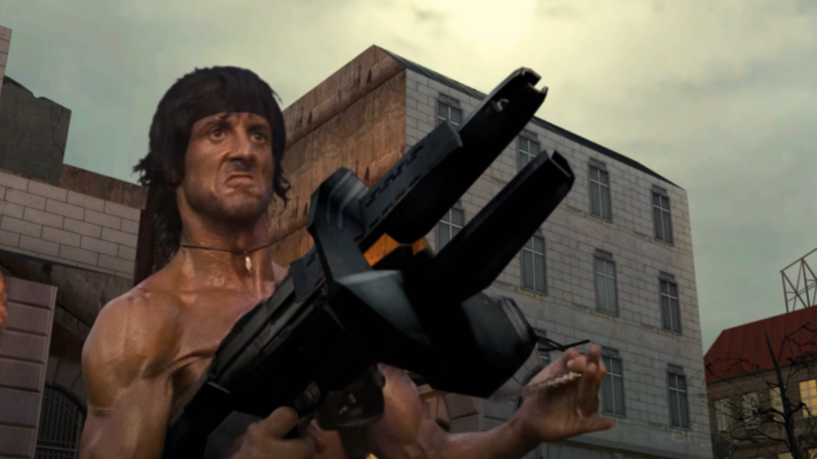 Для кроссовера Джон Рэмбо x Half-Life 2 блогер eli_handle_b․wav воспользовался: кадрами из фильмов про «Рэмбо», музыкой Something Secret Steers Us, модами Garry's Mod, SFM, Source Engine Blender Collection (@hisanimations).