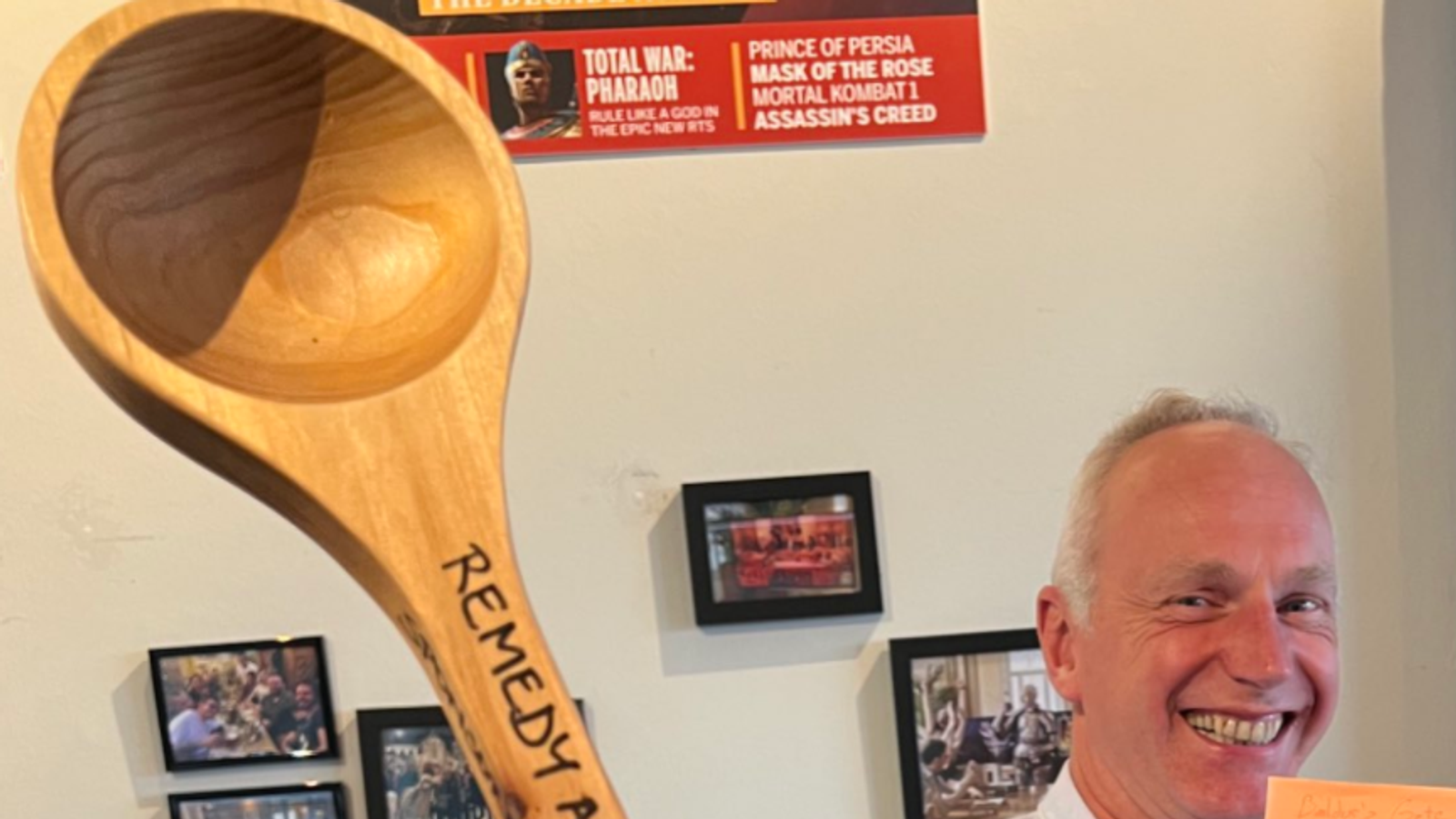 Судя по представленному им на фото письму, это награда от авторов Alan Wake за победу на шуточной церемонии Remedy Awards 2023.