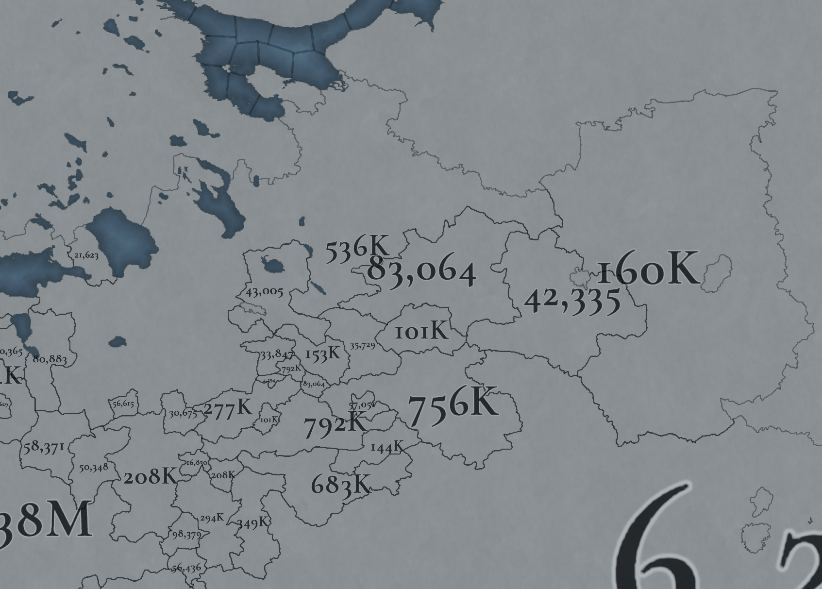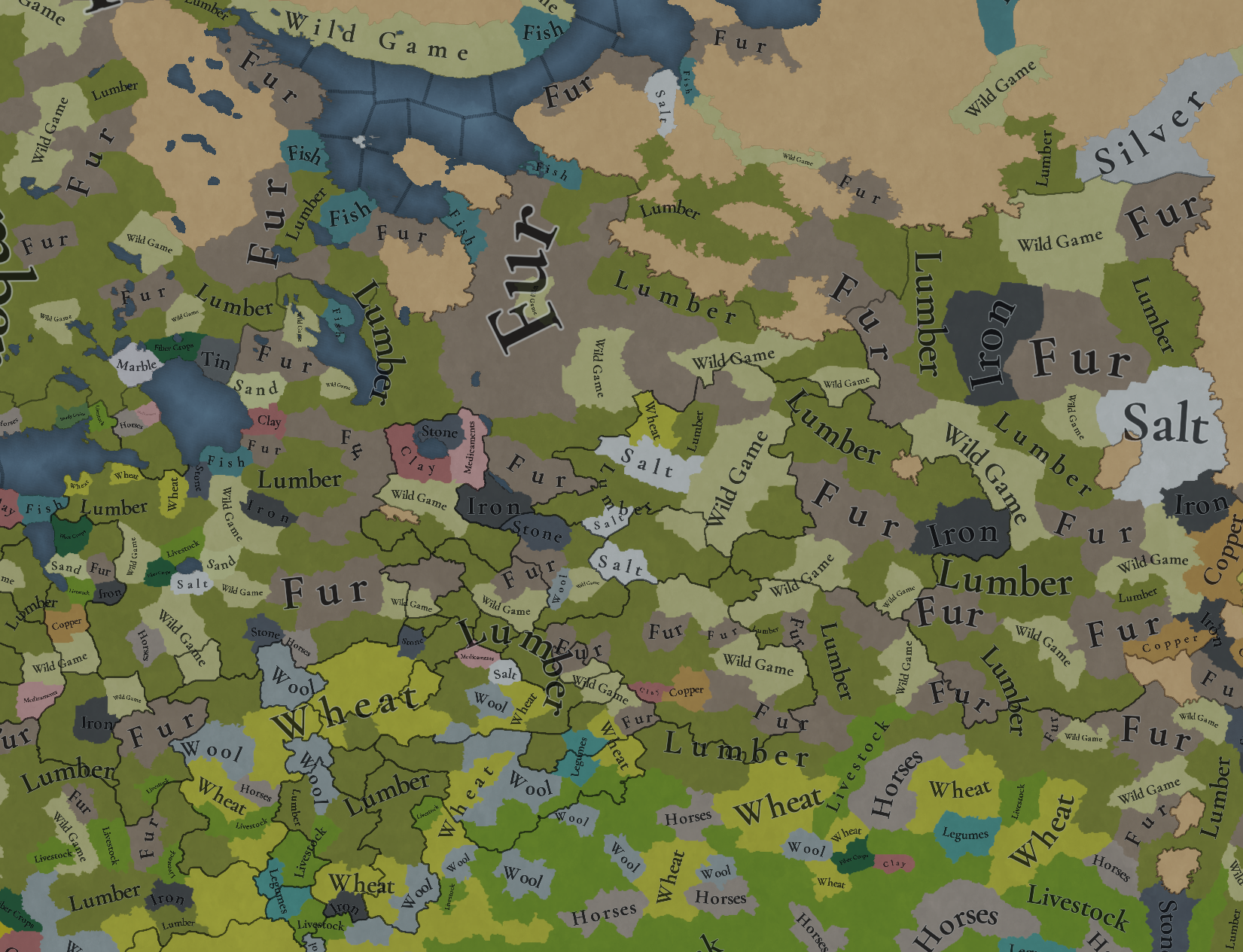Разработчики Project Caesar подготовили несколько карт разного типа — территориальную, культурную, ресурсную, демографическую и не только (больше можно найти по ссылке).