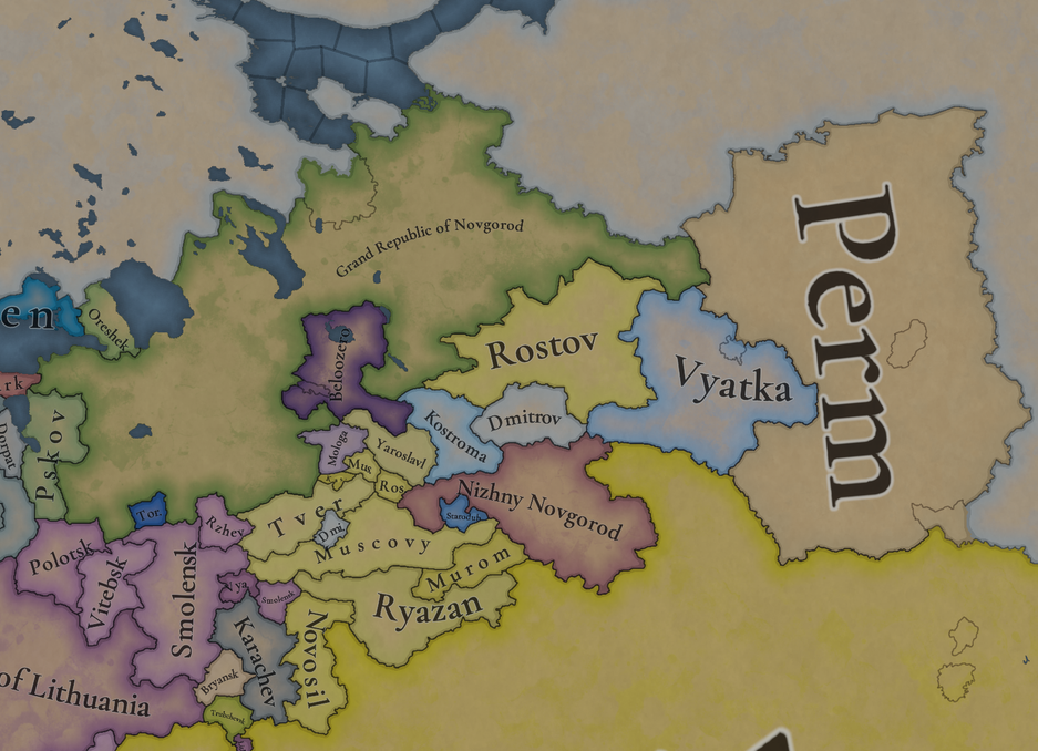 «…сегодня мы рассматриваем только "русское ядро", которое в 1337 году включало в себя различные русские княжества до Белого моря на севере и Уральских гор на востоке. Земли, которые впоследствии войдут в состав Российской империи, будут рассмотрены в будущем».