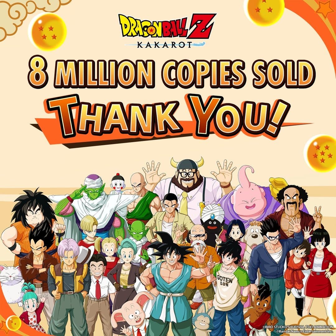 В сообщении, опубликованном в социальной сети X, издатель Bandai Namco поблагодарил игроков за поддержку с помощью специальной иллюстрации, подготовленной в честь более чем 8 миллионов игроков, которые уже приобрели игру Dragon Ball Z: Kakarot.