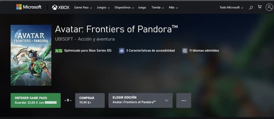 В сети появился скриншот карточки товара из магазина Xbox Store, на котором изображена Avatar: Frontiers of Pandora. В этом не было бы ничего удивительного, если бы не информация о присутствии игры в Game Pass. Microsoft регулярно добавляет в сервис продукты Ubisoft, а недавно французская компания сделала возможным приобретение подписки Ubisoft+ через Xbox.