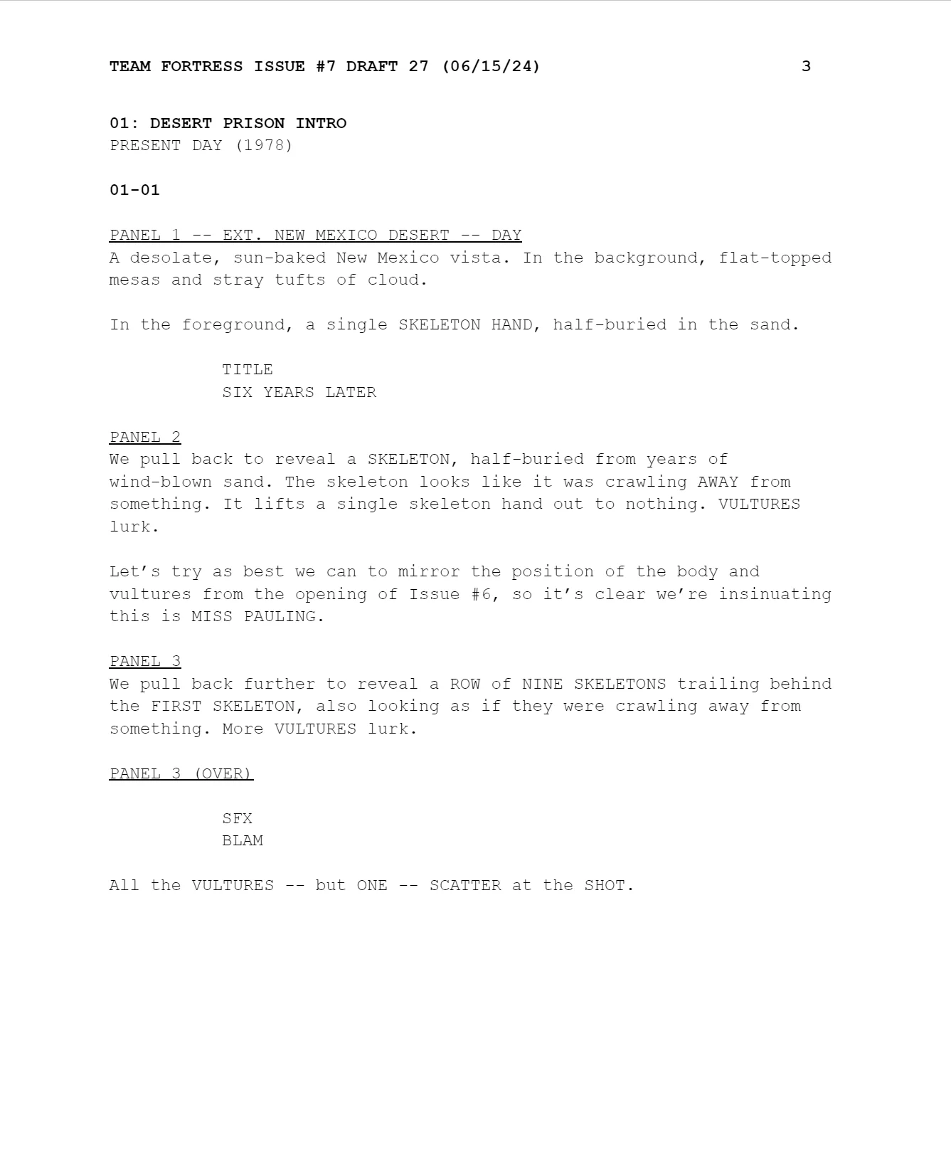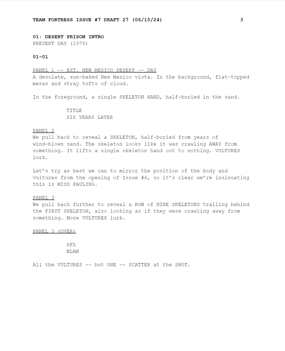 Предыдущий шестой выпуски комикса по Team Fortress 2 «The Naked and the Dead» вышел в 2017 году, т.е. седьмой выпуск появится спустя семь лет после предыдущего.