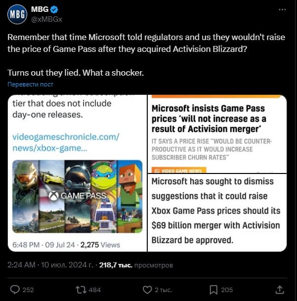 Часть сообщества, включая блогера MBG, вспомнила, как около года назад компания на вопрос британского регулятора CMA исключила намерение повышать цены на различных уровнях в Game Pass после завершения сделки по приобретению Activision Blizzard стоимостью около 70 миллиардов долларов.