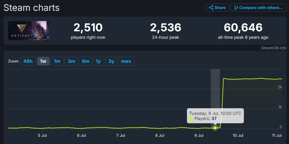 Амбициозная попытка Valve выйти на рынок карточных игр потерпела провал, и игра осталась практически полностью заброшенной. Но внезапно появилось несколько тысяч одновременных игроков.