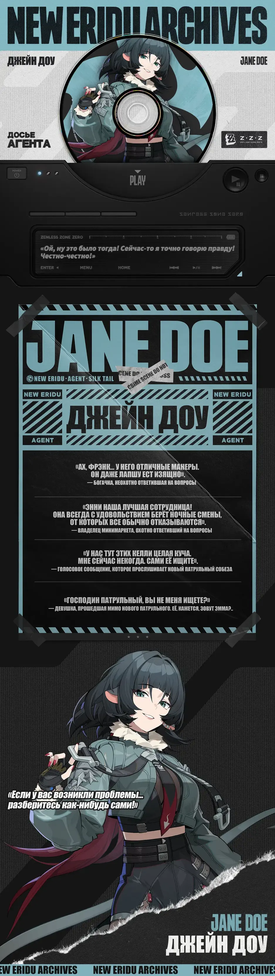 Внимательные поклонники Zenless Zone Zero (и следившие за утечками) уже могли познакомиться с Джейн Доу, или же рендером героини. Теперь miHoYo (HoYoverse) начинает знакомить сообщество с ней через официальные каналы.