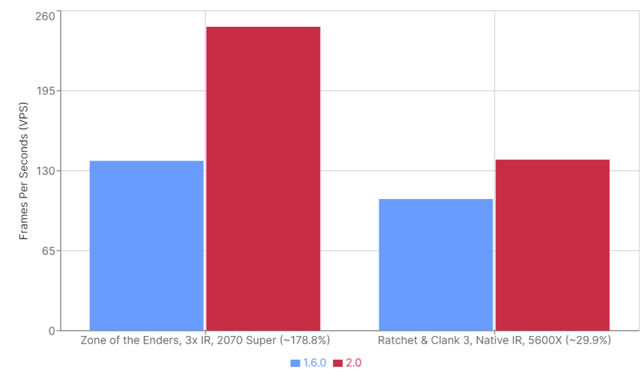 Версия PCSX2 2.0 демонстрирует более высокую производительность в некоторых играх. В ряде случаев речь идёт о приросте на сотни процентов или даже более чем на 1000%.