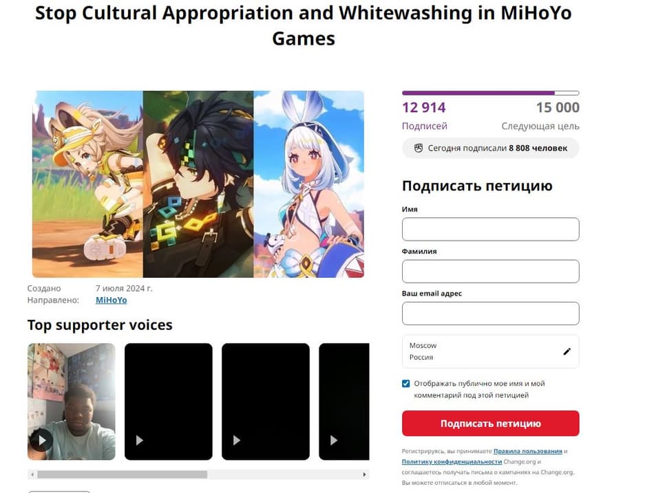 На портале Change.org появилась петиция с требованием сделать игры miHoYo более прогрессивными и инклюзивными, автор которой выражает огромное недовольство тем, что в проектах китайской компании слишком много белых людей и культурной апроприации.